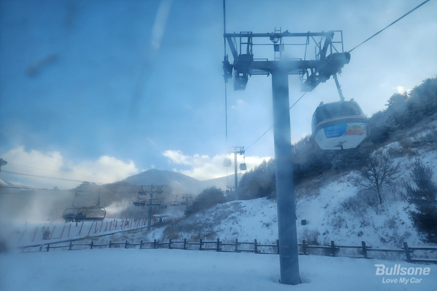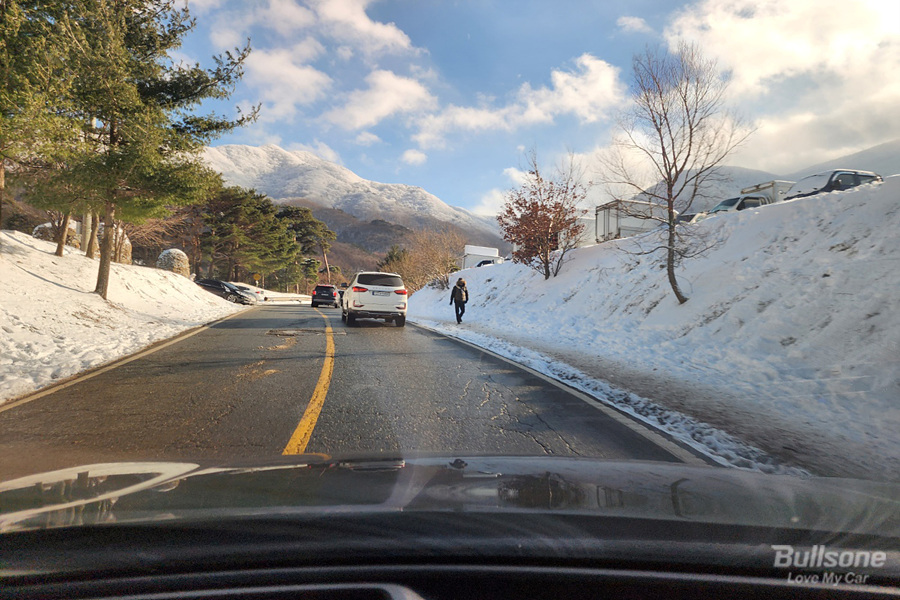 덕유산 케이블카는 무주 덕유산 리조트 스키장에서 올라가는 길이기 때문에 스키장과 함께 주차장을 사용하는데요, 주차장 가는 길에도 눈이 예쁘게 쌓여있고, 길이 예쁘게 포장되어 있어서 도착하는 순간까지 드라이브를 즐겁게 즐길 수 있습니다.