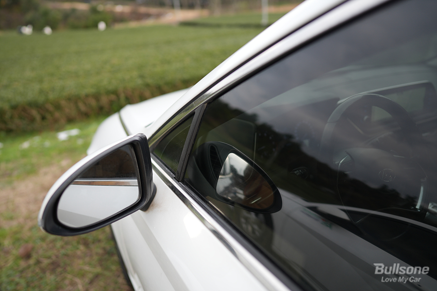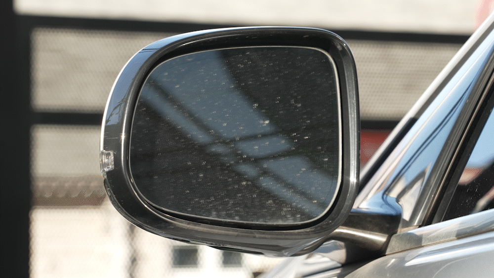 차량을 빛에 비추어 살펴보게 되면 더 잘 보이는데요. 운전석 옆 유리의 먼지와 오염물질, 그리고 사이드 미러의 지저분한 상태로 운전을 하게 된다면 시야가 잘 보이지 않습니다. 특히 저녁에 가로등이 없는 어두운 곳에서는 더더욱 주행이 위험합니다.
