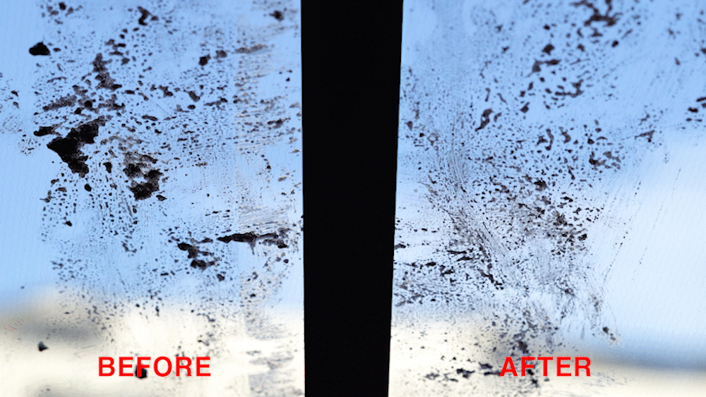 앞유리도 같은 방법으로 닦아줍니다. 유리크리너를 사용하기 전에, 흙이나 모래등 큰 이물질이 있다면 먼저 제거를 해주신 후 사용해 주세요.