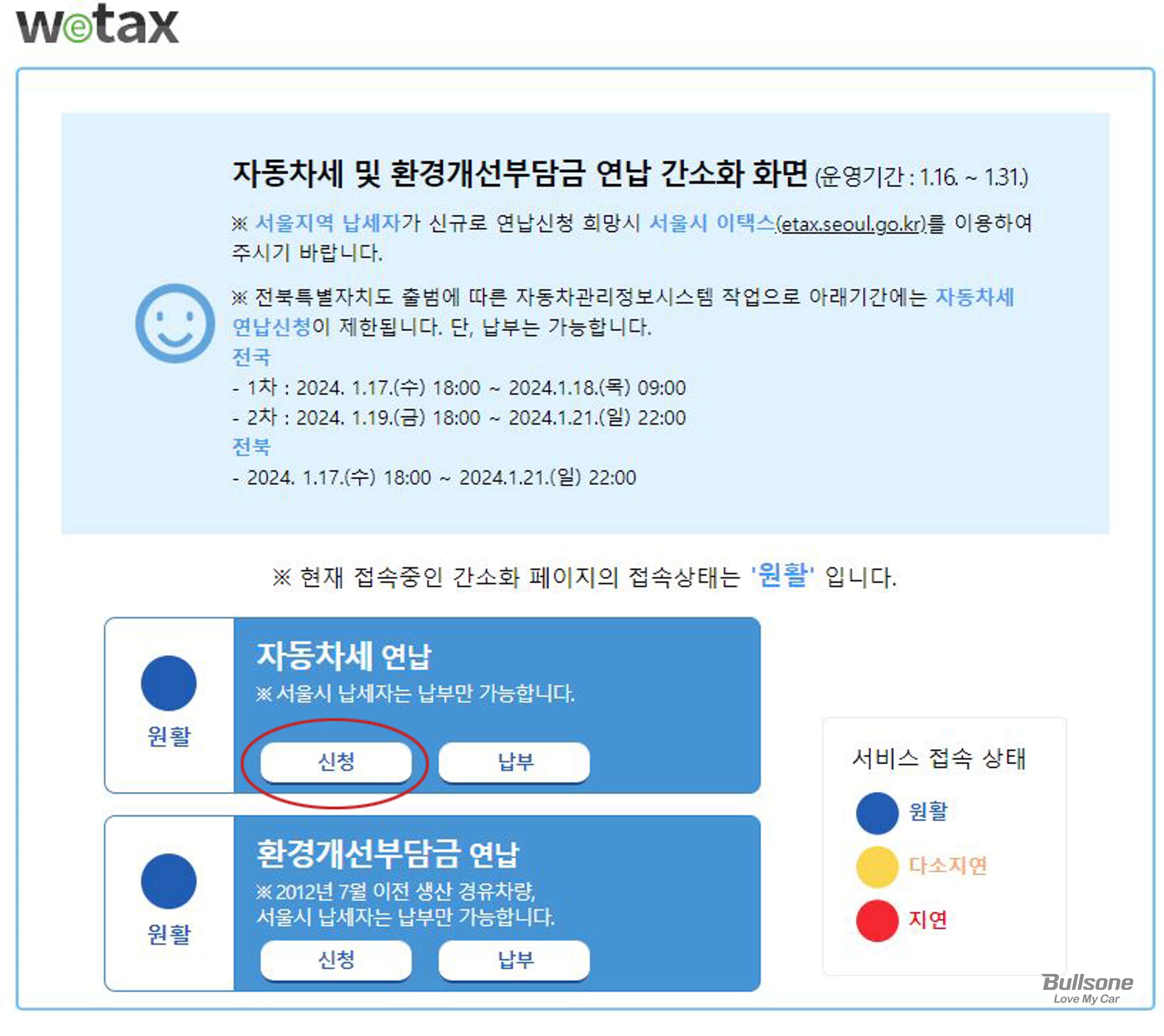 Wetax 위택스 자동차세 연납신청 전용 서비스 간소화페이지