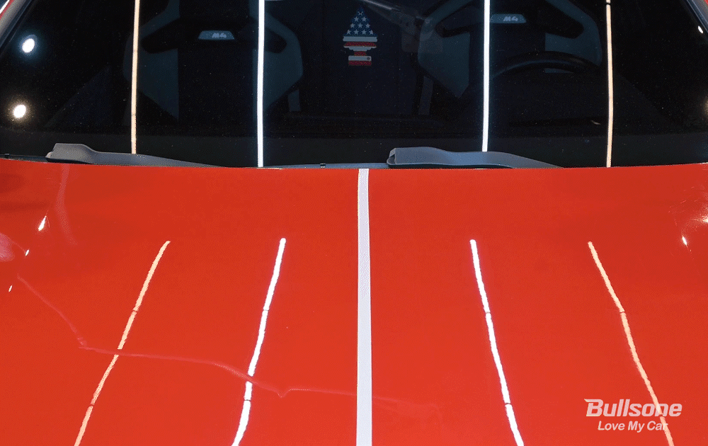 불스원 카나우바 고광택 왁스로 시공이 끝난 도장면에 물을 뿌려보고, 물컵을 던져보았습니다. 최상의 비딩과 극강의 슬릭감을 자랑하는 불스원 카나우바 고광택 왁스의 성능을 확인하실 수 있겠죠?