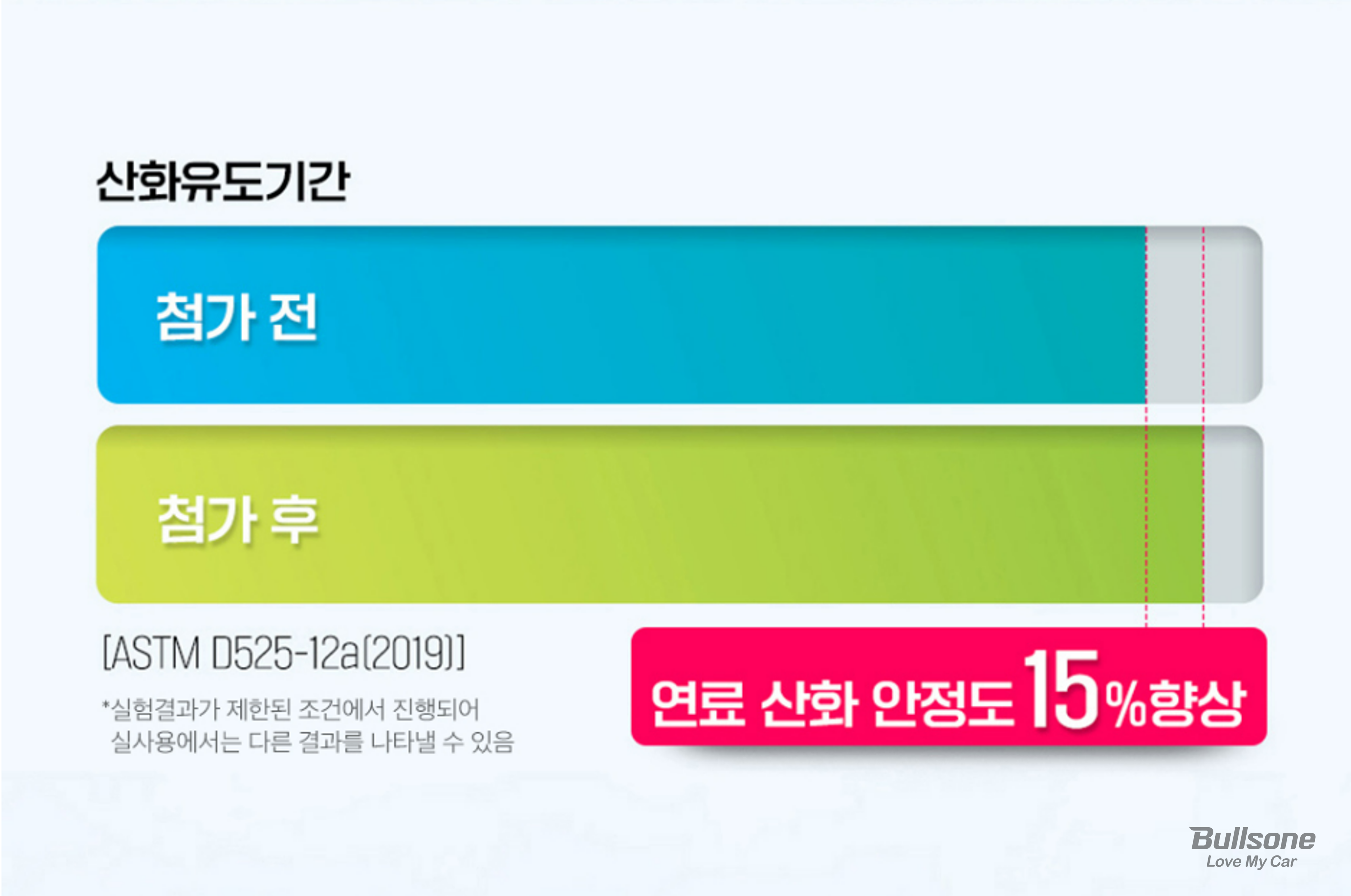 또한, 연료의 산화 가능성이 높은 하이브리드 자동차는 부산물로 인해 기능이 저하될 우려가 있는데요. 불스원샷 하이브리드를 사용하면 연료의 산화 안정도를 증가시켜 연료 품질을 더욱 오랫동안 유지할 수 있게 해줍니다!