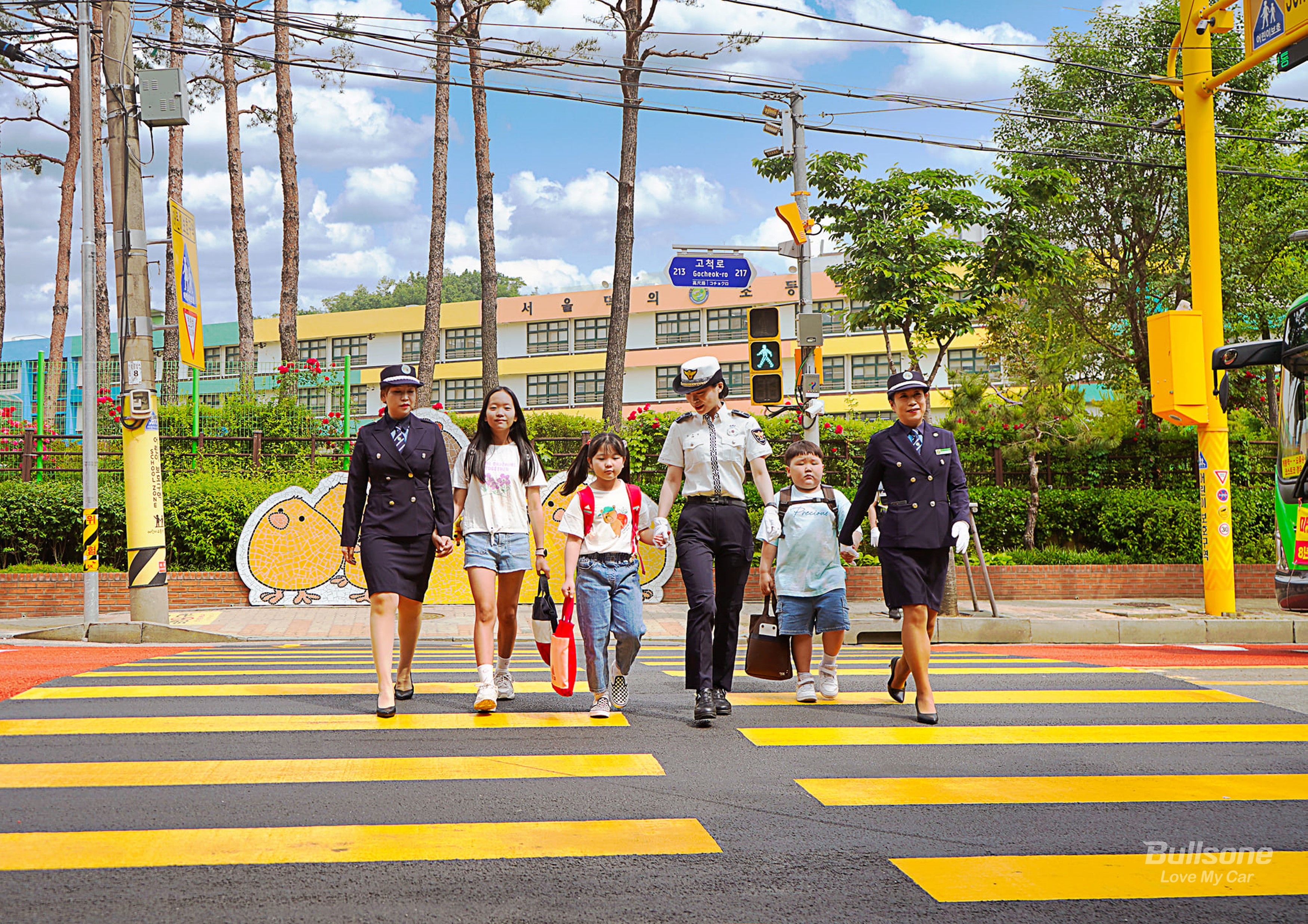 우리나라 도로에는 이처럼 해맑게 학교에 다니는 아이들을 지키기 위해 ‘어린이보호구역’이 설정되어 있습니다. 운전자분들은 답답하더라도 어린이들의 안전을 위해 어린이보호구역에서는 속도를 줄여 차량을 운행해야 하죠!
