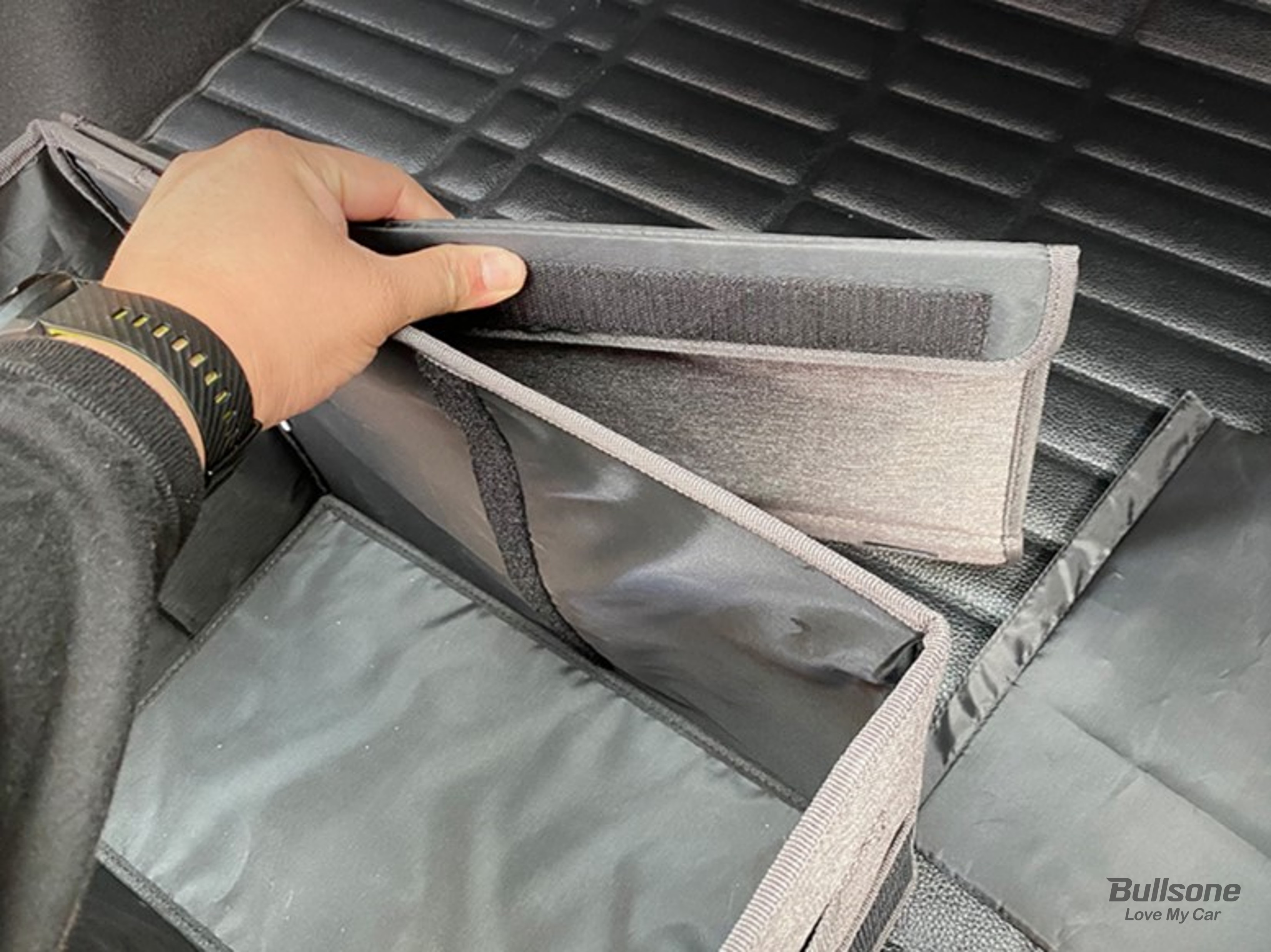 트렁크는 이리저리 흔들려 보관된 물건들이 흐트러지기 쉬운데요. 불스원 캔버스 트렁크 정리함의 하단에는 미끄럼 방지 벨크로가 있어 흔들리는 트렁크에서도 어질러지지 않은 상태를 유지할 수 있답니다.