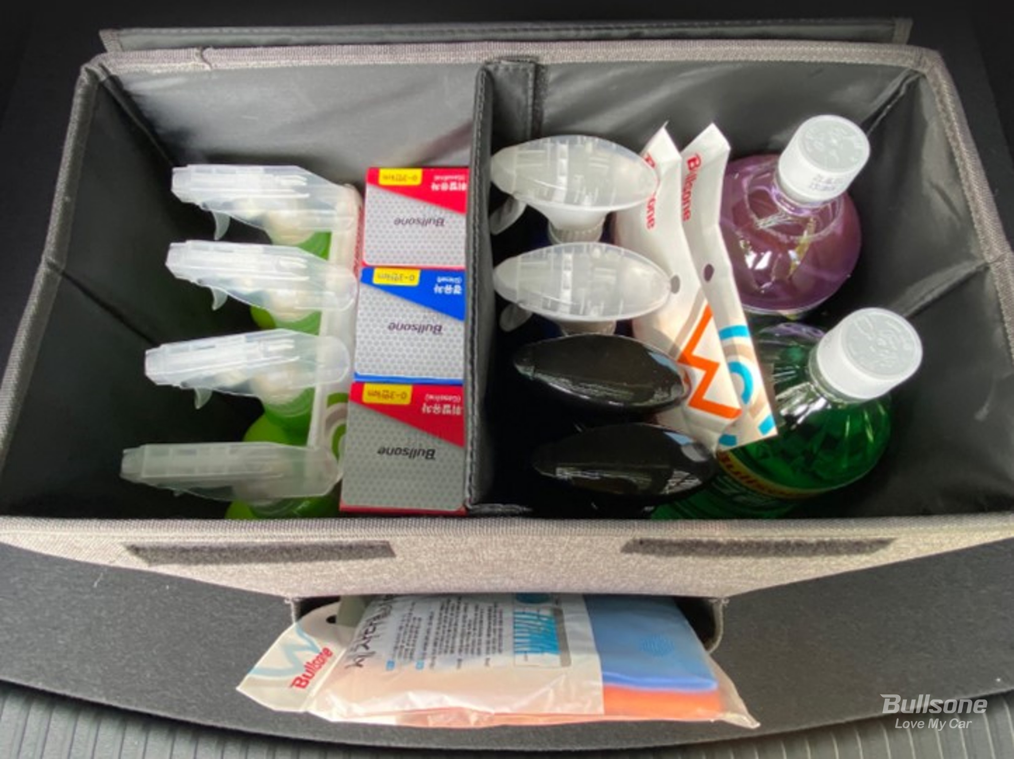 불스원 캔버스 트렁크 정리함은 공간 활용에 최적화된 디자인으로 우수한 수납력을 가지고 있으며, 제품의 앞면 및 양쪽 측면의 포켓이 내장되어 있어 세차 융이나 디테일링 장비같이 흐트러지기 쉬운 물건을 보관하기도 용이합니다. 또한 내부칸막이와 뚜껑커버는 쉽게 탈부착이 가능하도록 벨크로 타입으로 되어있어 보다 다양한 방식으로 수납 및 활용이 가능해요.