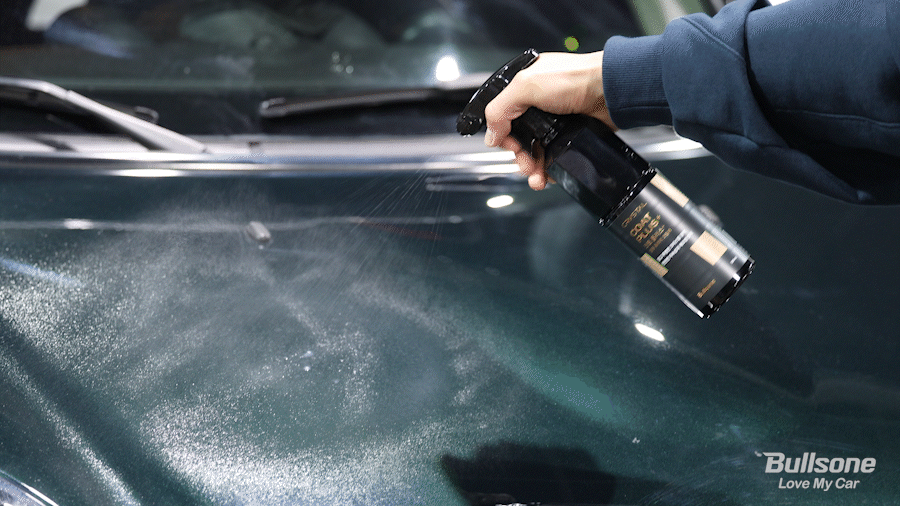 가장 먼저, 뉴 크리스탈 코트 플러스 유리막 코팅제를 잘 흔들어 시공 부위에 분사해줍니다.