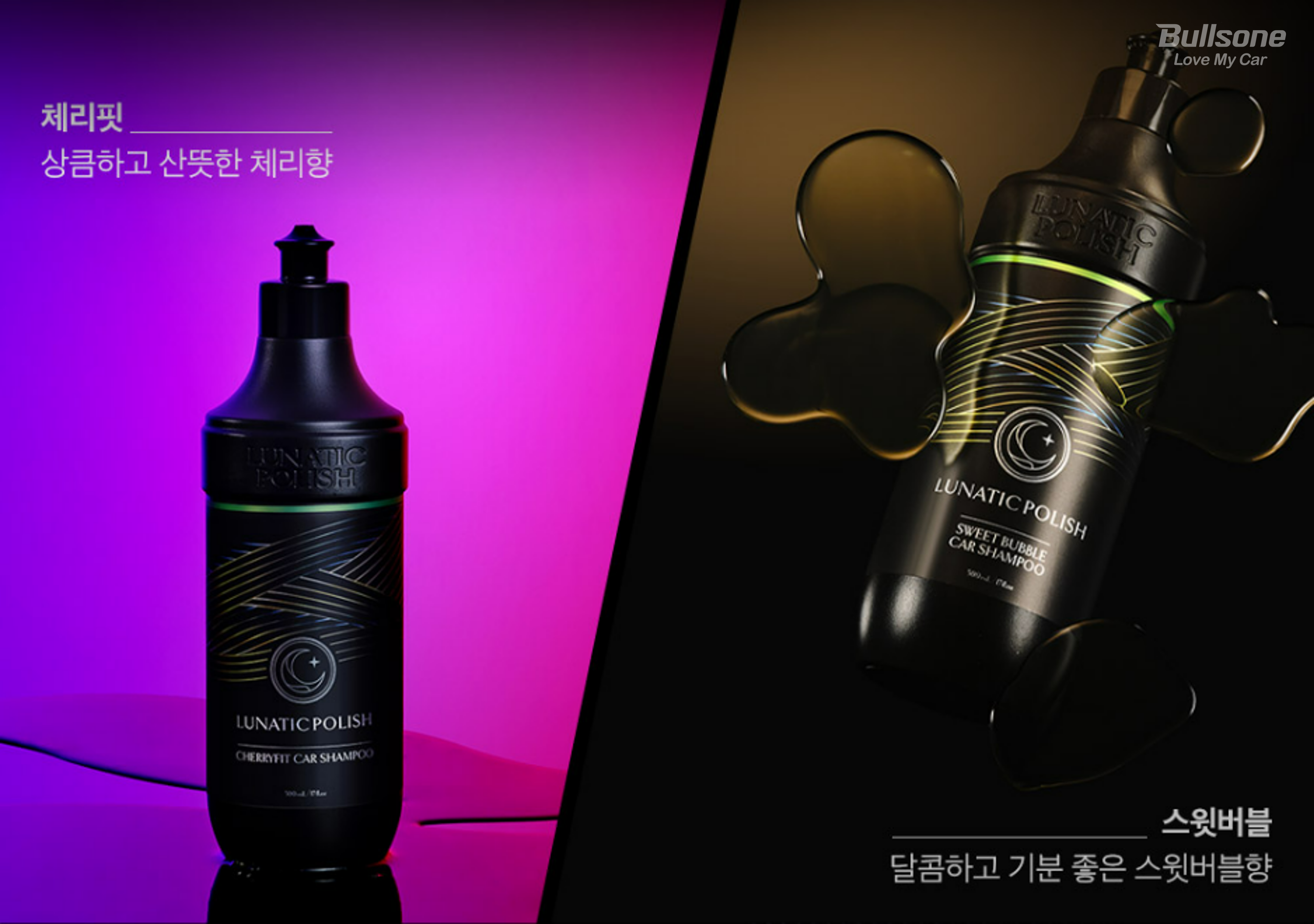 또한 계면활성제의 함유량을 대폭 높여 만든 고점도 카샴푸이기 때문에 거품이 풍성하고 윤활력도 매우 뛰어납니다. 희석비도 1:200 ~ 1000의 높은 수치를 보여주어 가성비 역시 아주 우수합니다. 루나틱폴리시 카샴푸는 상큼하고 산뜻한 체리향, 달콤하고 기분 좋은 스윗버블향 두가지로 구성돼 있기 때문에 취향에 맞는 향을 선택해 사용할 수 있는 것도 장점입니다!