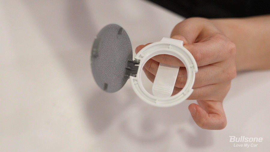 - 불스원 선바이저 방향제 제품의 앞커버를 당겨 열어주세요.