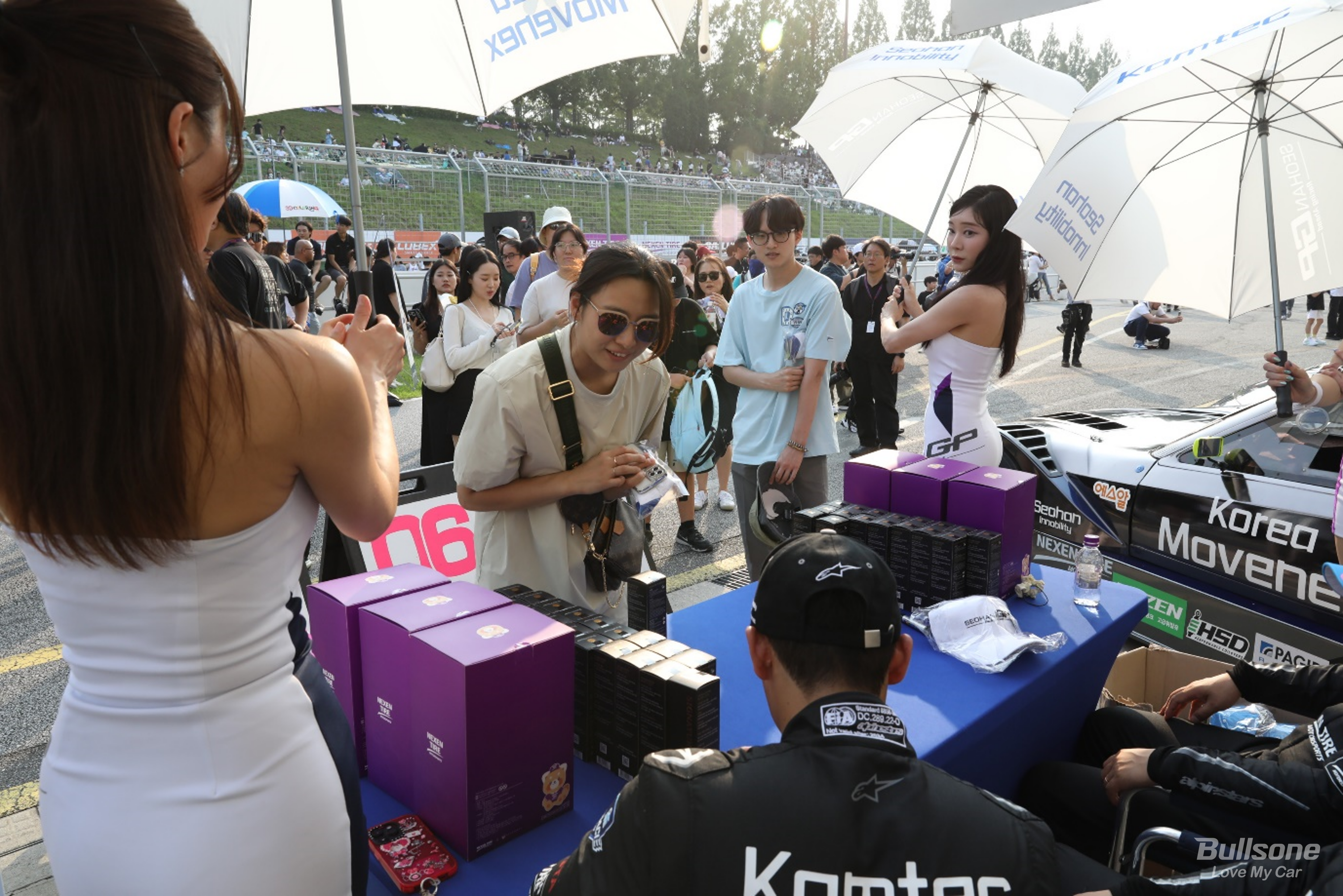 서한GP 1등의 숨은 주역! 불스파워 시그니처를 나눠주고 있는 선수들! 팬분들의 차도 깨끗이 관리했으면 좋겠다는 마음이 엿보입니다!