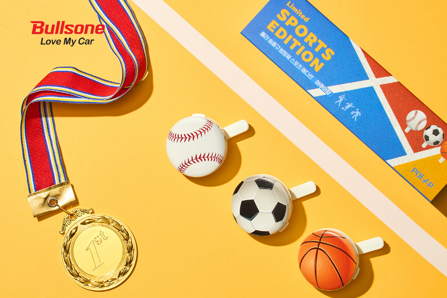 폴라 스포츠 에디션은 불스원의 방향제 브랜드인 '폴라'의 첫번째 리미티드 에디션으로, 뜨거운 스포츠의 열정을 담아내 전세계인이 사랑하는 축구, 농구, 야구공 모양의 스포티한 디자인이 특징입니다.
