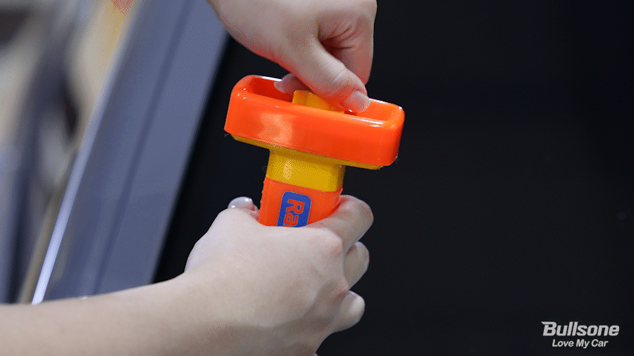 제품의 사용법은 유막제거제와 동일합니다. 먼저, 제품 하단의 나사를 돌려 캡을 제거해주세요.