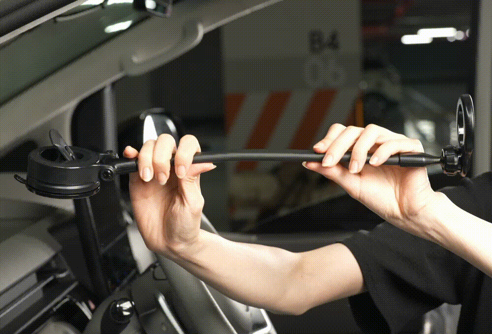 뿐만 아니라, 길이 조절 연장암을 사용해 운전자 시야에 가깝에 휴대폰 거치 및 각도 조절이 가능합니다.