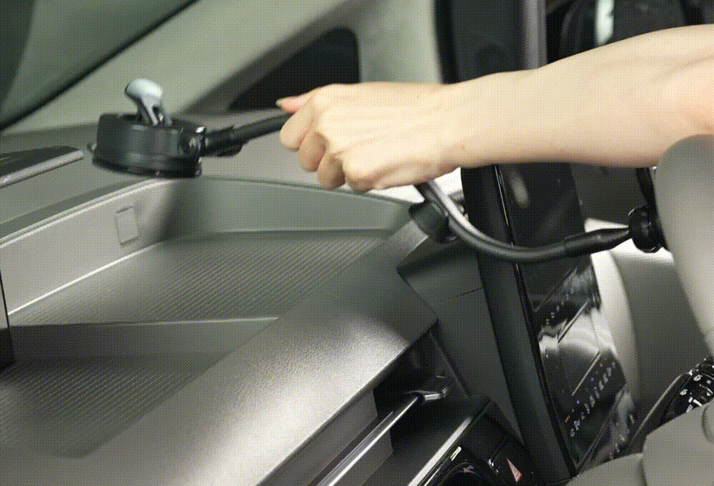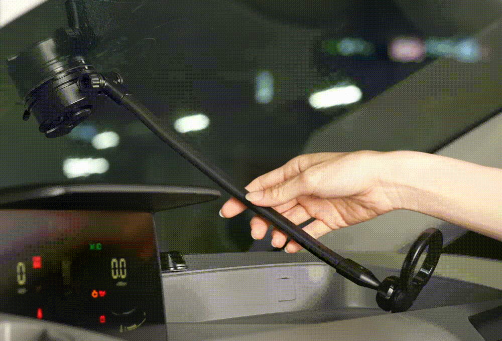 뿐만 아니라, 길이 조절 연장암을 사용해 운전자 시야에 가깝에 휴대폰 거치 및 각도 조절이 가능합니다.