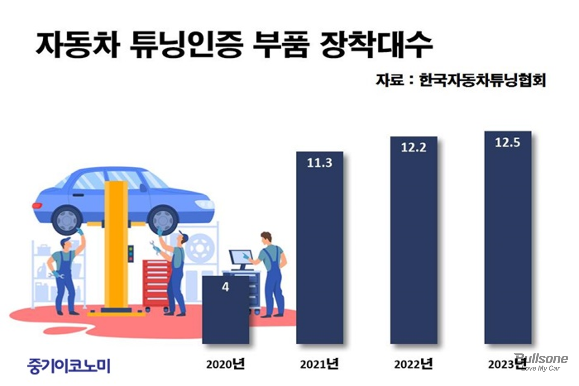 성장하는 자동차 튜닝 시장에 대응하고자 국토교통부는 자동차 튜닝부품 인증제 및 대체부품 성능·품질인증제 도입과 정비요금 공개 등을 내용으로 하는 ‘자동차관리법’을 개정해 2015년 1월부터 시행하였습니다.
