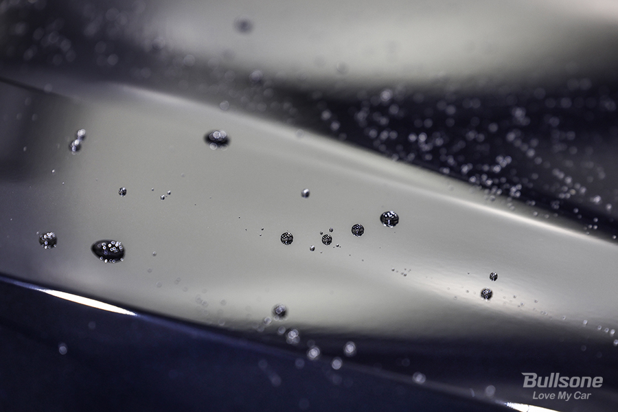 아직 24시간이 지나지는 않았지만 크리스탈 하이브리드 고체왁스의 강력한 발수력을 확인하기 위해 크리스탈 하이브리드 고체왁스가 시공된 도장면 위에 물을 뿌려보았습니다. 부드럽게 미끄러져 내리는 물방울로 크리스탈 하이브리드 고체왁스의 놀라운 발수력을 확인하실 수 있습니다.
