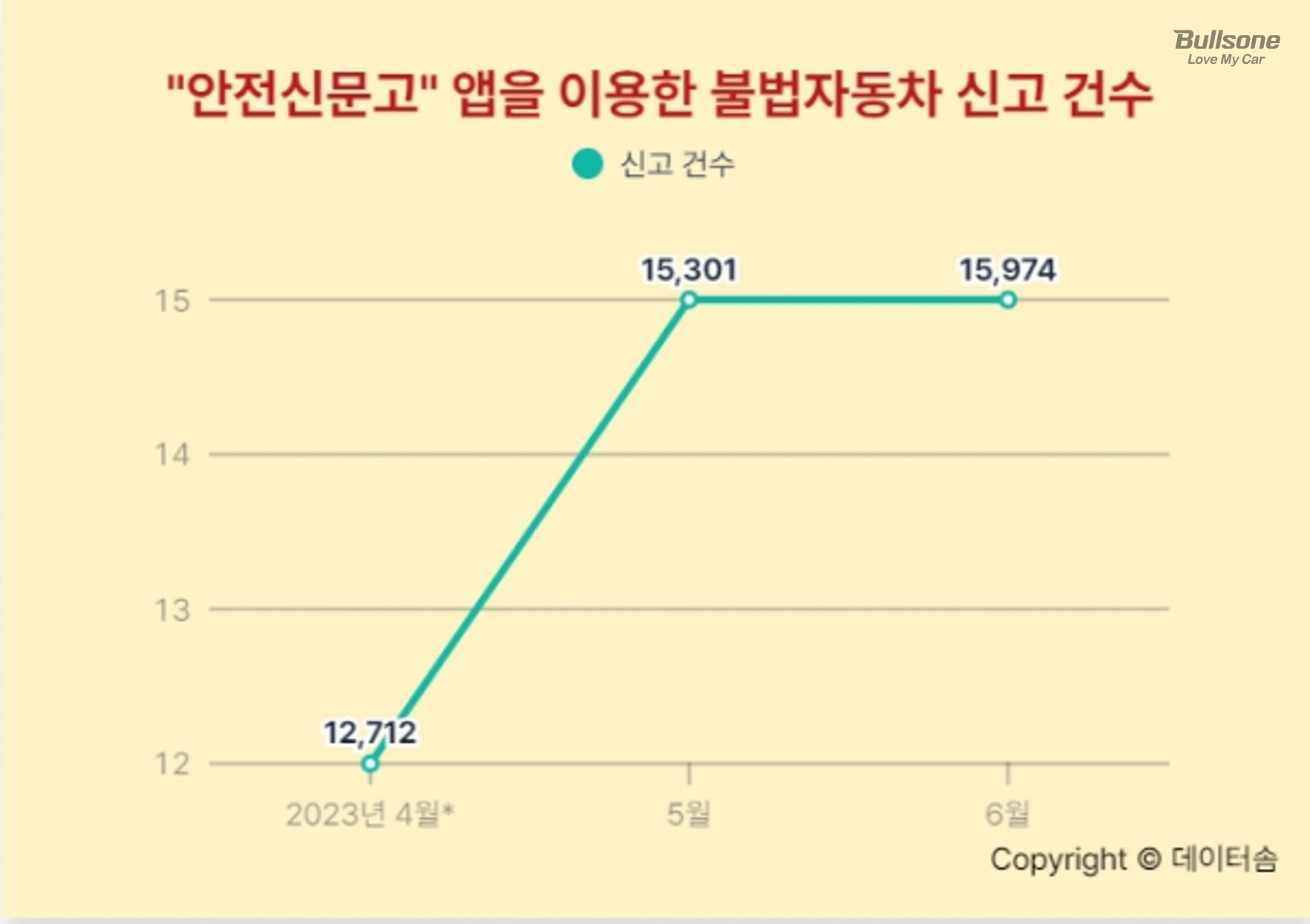 위에서 살펴보았듯이 2023년 4월부터 ‘안전신문고’ 앱에 간편 신고 기능이 추가되면서 제보 방법이 간단해 앱을 사용한 불법 자동차 신고가 활발해졌습니다. 최근 5년간 적발 건수는 2020년 25만건→2021년 26만8000건→2022년 28만4000건, 2023년에는 33만7000건으로 대폭 증가하였으며, 2024년 상반기에만 작년의 반을 넘어서 17만8000건으로 점점 늘어나는 추세입니다.