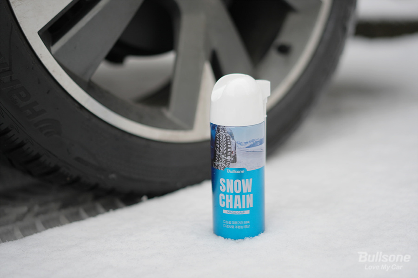 예상치 못한 눈에 빙판길을 지나야 하는 긴급 상황에는 타이어에 체인을 끼우는 것이 좋은데요. 타이어 체인을 채우는게 힘들 때는 스프레이 체인을 사용하는 것도 좋습니다. 불스원의 매직그립 스노우체인은 특허 기술 ‘코어쉘(core-shell) 구조’로 타이어의 미끄럼을 효과적으로 방지합니다. 불스원 매직그립 스노우체인을 타이어에 뿌리기만 해도 눈길 제동거리 39%, 언덕길 주행시간 36%를 줄일 수 있습니다!