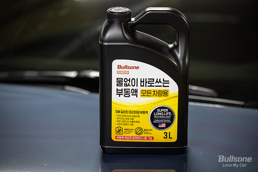 특히나 부동액은 차종에 따라 색상도 구분해서 넣어야 한다는 점이 까다로운데요. 국산차인지 수입차인지, 혹은 브랜드에 따라 부동액의 색상이 분홍색, 녹색 또는 파란색이기도 하죠. 이는 부동액의 종류(에틸렌글리콜, 프로필렌글리콜 등)를 구분해 서로 다른 부동액이 섞이지 않도록 하기 위함입니다. 하지만 오늘 소개해드릴 불스원 물 없이 바로 쓰는 부동액은 모든 차량의 부동액과 안정도 테스트를 거쳐 혼용해 사용 가능하다는 것이 큰 장점인 부동액인데요.