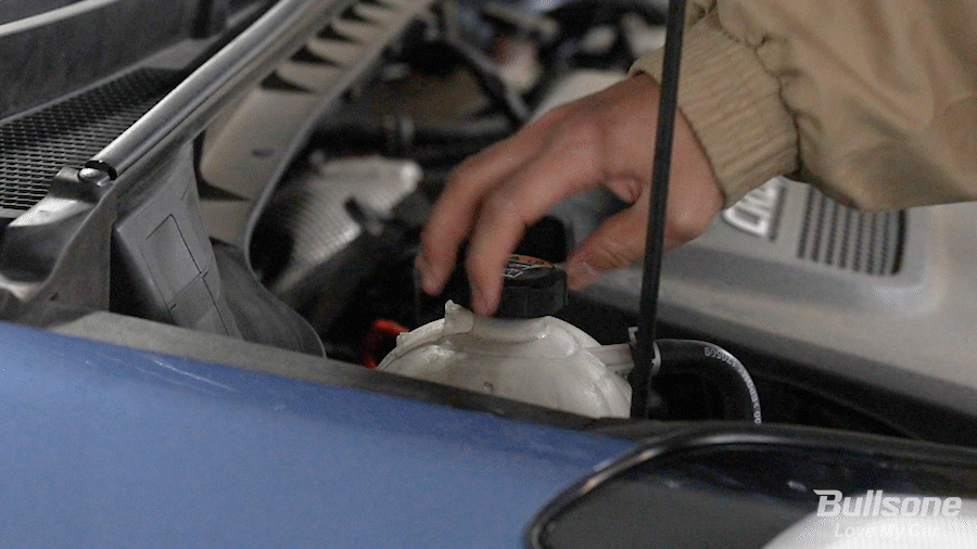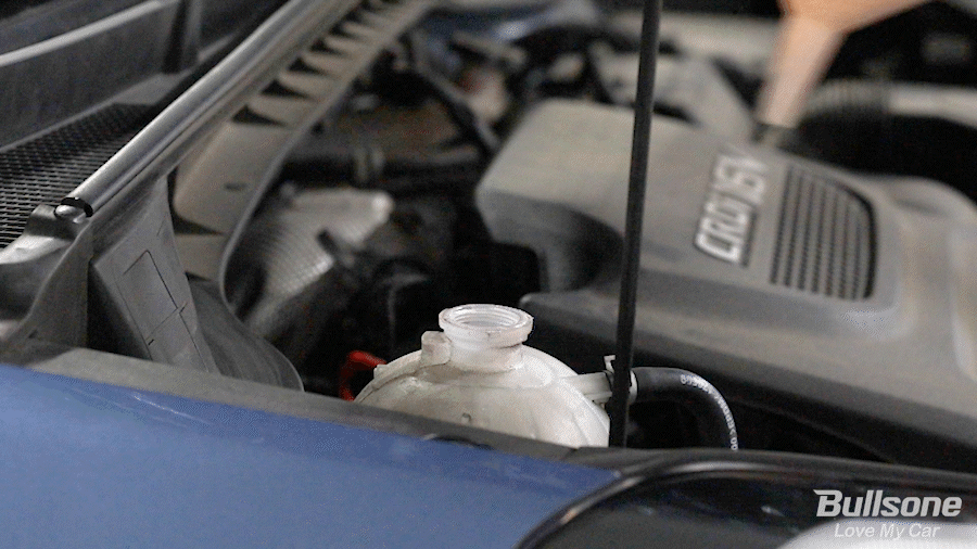 천천히 부동액을 부어 냉각수 통에 넣어주세요. 냉각수가 냉각수 탱크의 적정 라인까지 차오르는 걸 확인하며 채워주세요. MIN과 MAX 사이로 맞춰서 채워주시면 됩니다.