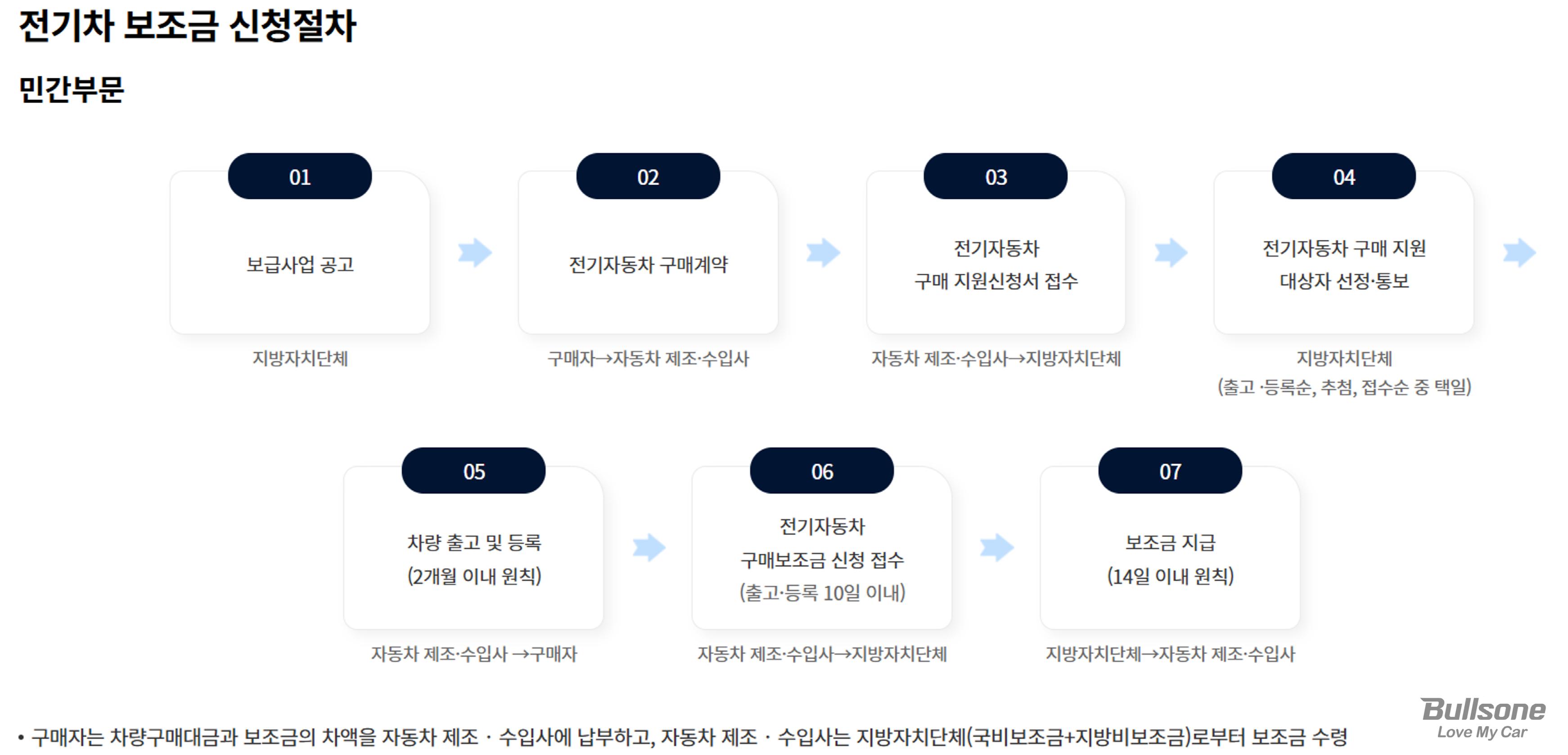 ‘무공해차 통합누리집’ 사이트를 통해 전기차 구매 보조금 지원절차부터 대상 차량의 차종까지 확인 가능합니다. 특히 구매 보조금의 경우 구매자는 차량구매대금과 보조금의 차액을 자동차 제조·수입사에 납부하고, 자동차 제조·수입사는 지방자치단체(국비보조금+지방비보조금)로부터 보조금을 수령하는 절차이오니 꼭 참고 바랍니다.
