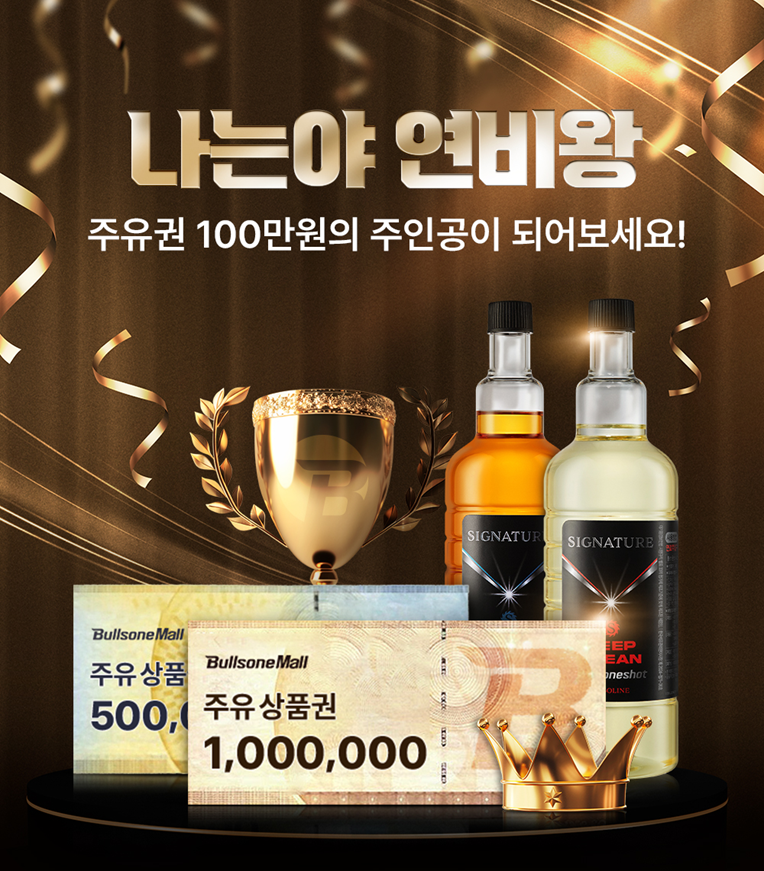 이번 연비왕 선발대회에서 가장 높은 연비 향상률을 기록한 참가자에게는 무려 주유상품권 100만원이 지급됩니다! 또한, 2위를 기록한 50명에게도 주유상품권 50만원권이 제공되며, 3위 100명에게는 불스원샷의 신제품 ‘불스원샷 시그니처 딥클린’을 증정합니다!