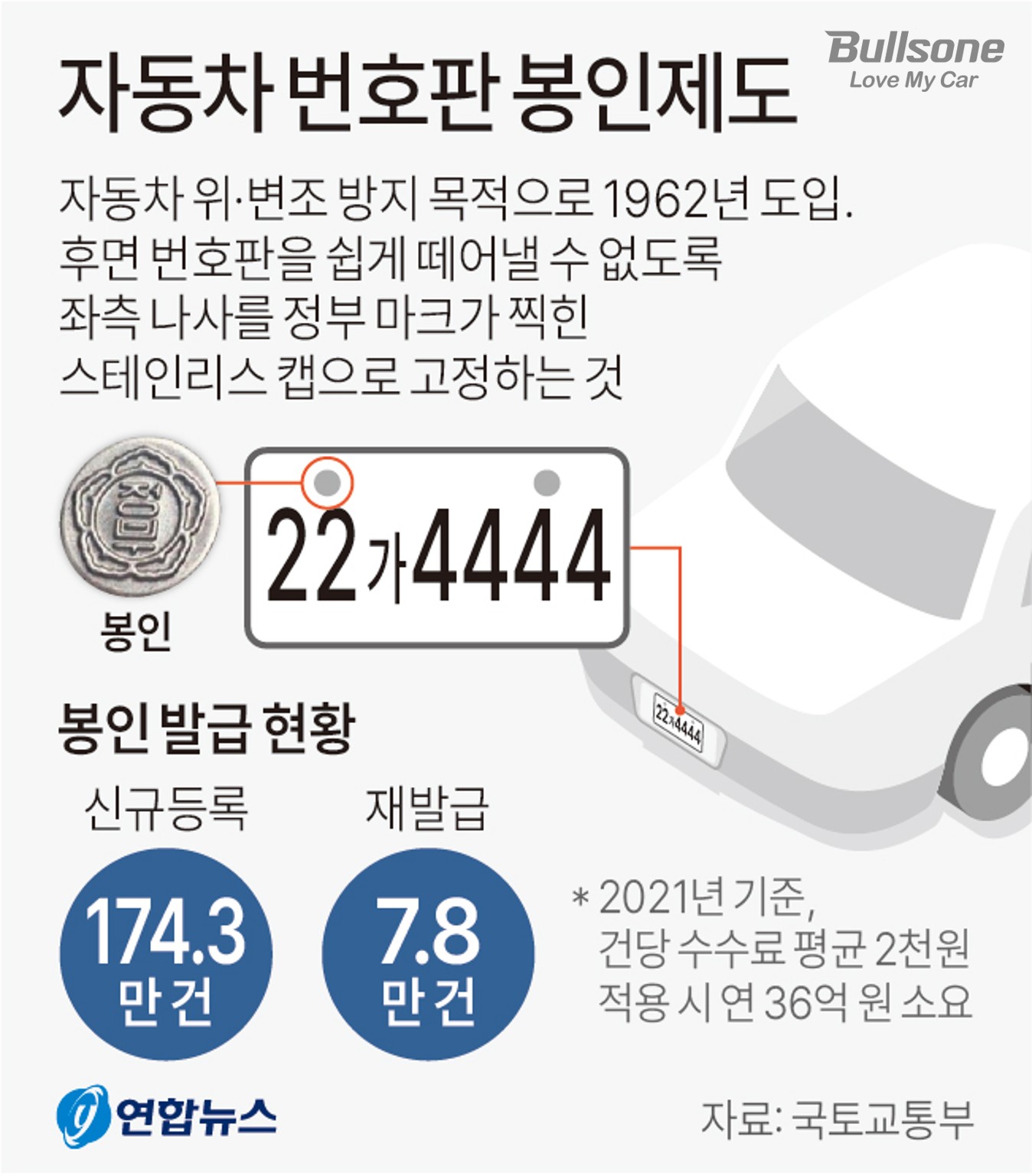봉인제도는 나사와 그 위 스테인리스로 된 캡을 돌려 번호판을 고정하기 때문에 녹이 쓸고 부식되기 쉬웠습니다. 차량 미관상 문제뿐만 아니라 차량 등록 및 소유권 이전 시 불필요한 등록소 방문 절차가 발생하고, 중고차 거래 등 번호판 변경 시 추가 비용이 발생하는 등 번거로움이 많았습니다. 이에 지난 2월 21일부로 개정된 자동차관리법에 따라 봉인 의무 규정이 폐지되었고 자동차 관리법 10조는 ‘등록번호판을 봉인하고 붙여야 한다’에서 ‘등록번호판을 붙여야 한다’로 변화했습니다. 다만, 규정은 조금 수정되었지만 여전히 번호판 자체를 견고히 부착해야 한다는 의무는 유지됩니다.