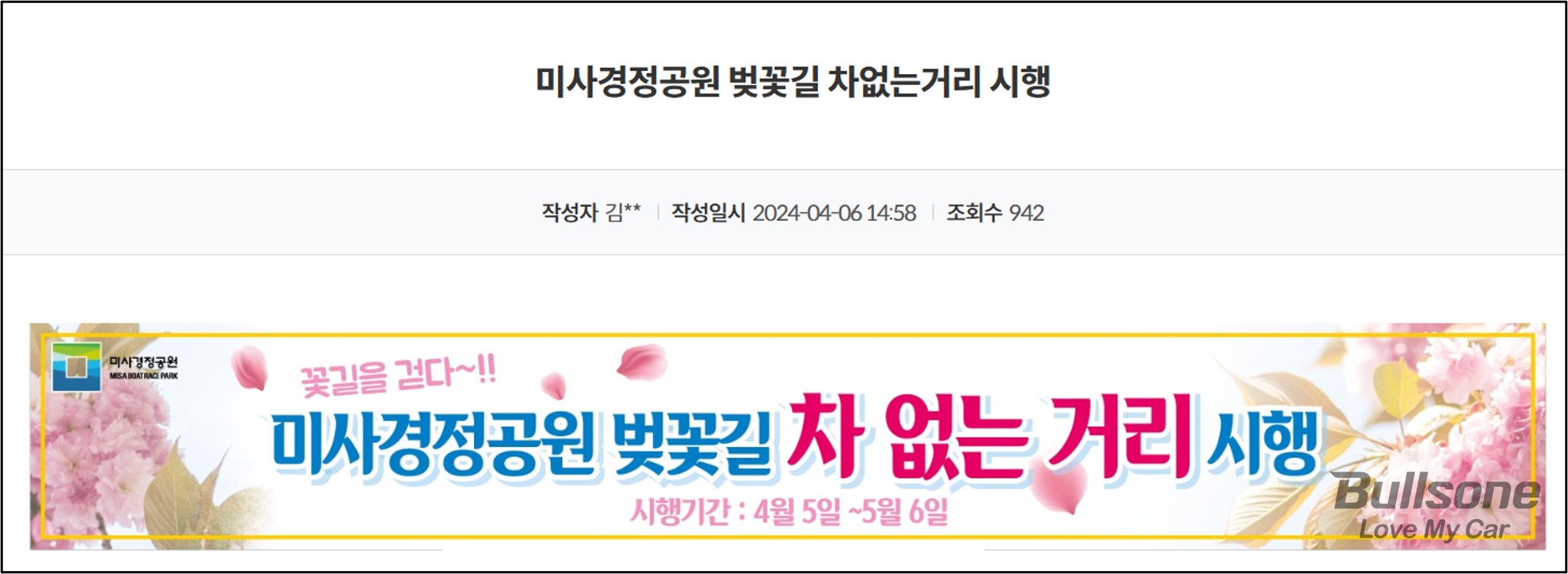 다만, 일부 절정기간동안 겹벚꽃거리에 ‘차없는 거리’가 시행될 수 있어 유의가 필요합니다. 보통 공원의 거리 중 일부 구간에 해당하기 때문에 꽃 구경에는 영향을 주지 않으며, 오히려 다른 구역 주차장에 차를 세우고, 겹벚꽃길을 걸어보시는 것을 추천드립니다.