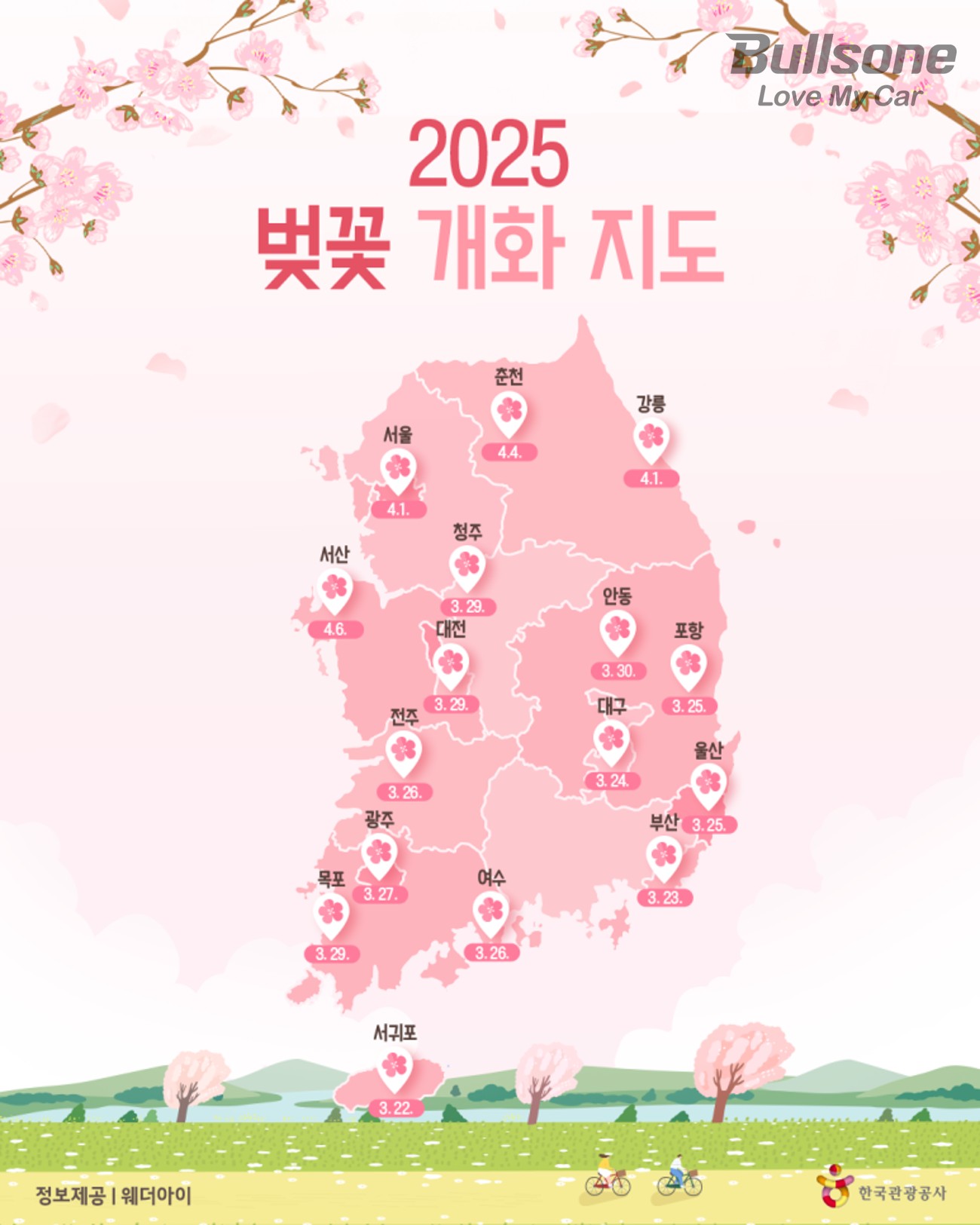 매년 빠르게 따뜻해지는 봄 날씨로 인해 2025년 벚꽃 개화시기 역시 평년보다 3~8일 정도 빠를 것으로 예상되고 있습니다. 기상청에서는 주기적으로 지역 벚꽃 개화현황을 확인할 수 있는 서비스를 제공하고 있으며, 일부 지역에서는 벚꽃 축제를 앞두고 실시간 벚꽃 개화를 확인할 수 있는 벚꽃 LIVE를 실시할 예정이라고 밝혔습니다. 길었던 추운 겨울을 보내고 각양각색의 봄을 맞이하는 방법들로 분주합니다. 다양한 봄꽃, 벚꽃 맞이 축제가 예정된 가운데, 드라이브를 통해 봄의 정취를 느낄 수 있는 드라이브 코스를 추천하려고 합니다. 온통 핑크빛으로 물든 봄을 온전히 느끼러 가볼까요? 🌼🚘