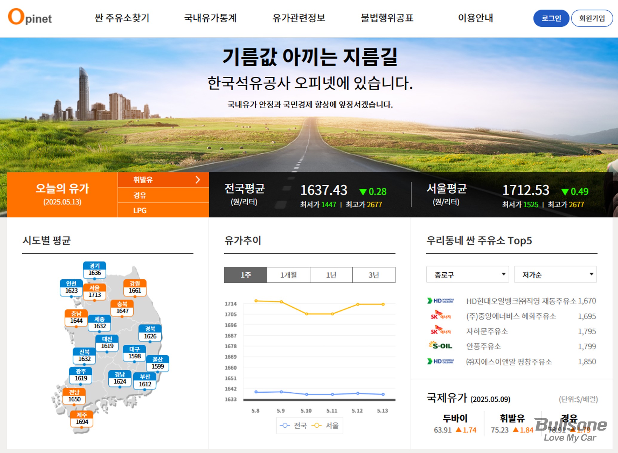 가장 현실적으로 기름값을 아끼는 방법은 매일 변동되는 기름값을 확인하여 가장 저렴한 주유소를 찾아 가는 것입니다. 특히 한국석유공사에서는 석유제품 가격 조사·공개를 통한 거래의 투명성 및 소비자 가격 안정화를 위해 공공정보 플랫폼인 ‘오피넷’을 운영하고 있습니다. 유가정보 사이트로 전국 주유소와 자동차충전소의 현재 판매가격을 비롯해 다양한 유가 정보를 제공하고 있으며, 휴대폰 앱으로도 쉽게 검색 가능합니다.