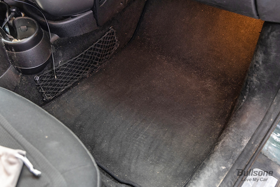실제로 이 먼지와 오염물이 가득 쌓인 조수석 발판을 시그니처 에어부스터 차량용 청소기로 깨끗하게 청소해보겠습니다. 연식이 오래된 차량이라 카매트와 하부 소재가 패브릭으로 되어 오염물과 먼지를 제거하기가 쉽지 않은데요. 이럴 때일수록 흡입력이 좋은 청소기가 더더욱 필요합니다.