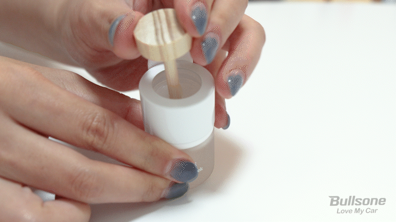 4. 동봉된 우드 스틱을 속캡의 중앙에 꽂아주세요.