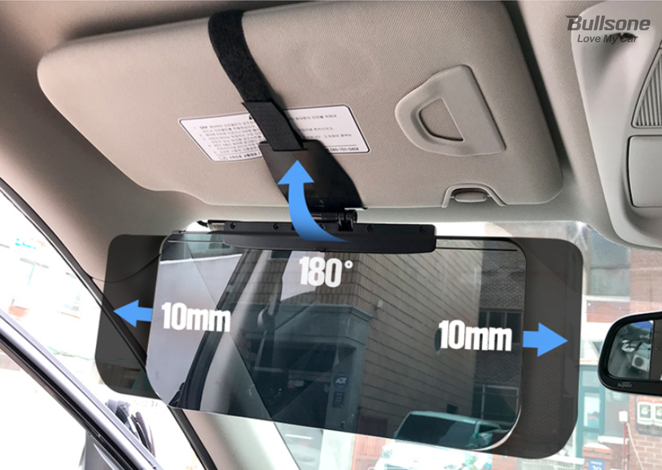 보통 자동차의 선바이저의 경우 앞유리의 일부를 가려 운전에 방해를 줄 수 있지만 자외선(UV)을 99% 차단하면선도 반투명한 소재로 운전 시야를 확보해주는 불스원 UV차단 슬라이딩 선바이저 햇빛가리개는 상하좌우 넓은 각도조절로 상황에 맞게 사용이 가능한 장접이 있습니다. 상하 180도 각도조절, 100m 좌우조절로 필요한 순간에 효과적이라 가장 해가 높은 시간대, 해가 뜨고 지며 애매하게 눈을 파고드는 각도까지 햇빛과 자외선을 차단해줍니다.