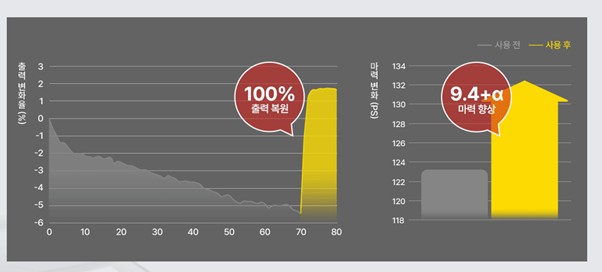 이후 STEP 2를 넣어 세정하게 되면, 처음과 같은 활력을 되찾으며 한결 가벼워진 움직임을 느끼실 수 있습니다. 카본 때 세정을 마치면 연료분사장치가 미세하게 분사되며 연료가 잘 탈 수 있도록 도움을 주고, 공기유입밸브에서 공기 유입이 정교하고 원활해지며 열 전달이 활성화되어 높은 출력을 자랑하게 됩니다.