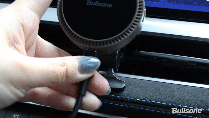 지지대 부분의 각도를 알맞게 조절해주시면 불스원 에어쿨링 맥세이프 무선 거치대 장착 완료!