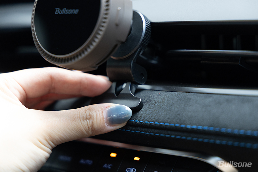지지대 부분의 각도를 알맞게 조절해주시면 불스원 에어쿨링 맥세이프 무선 거치대 장착 완료!