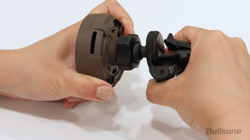 함께 동봉된 거치대 볼을 거치대 헤드와 결합해 조립해주세요. (딸깍) 소리가 나며 맞물리면 조립이 된 것입니다.
