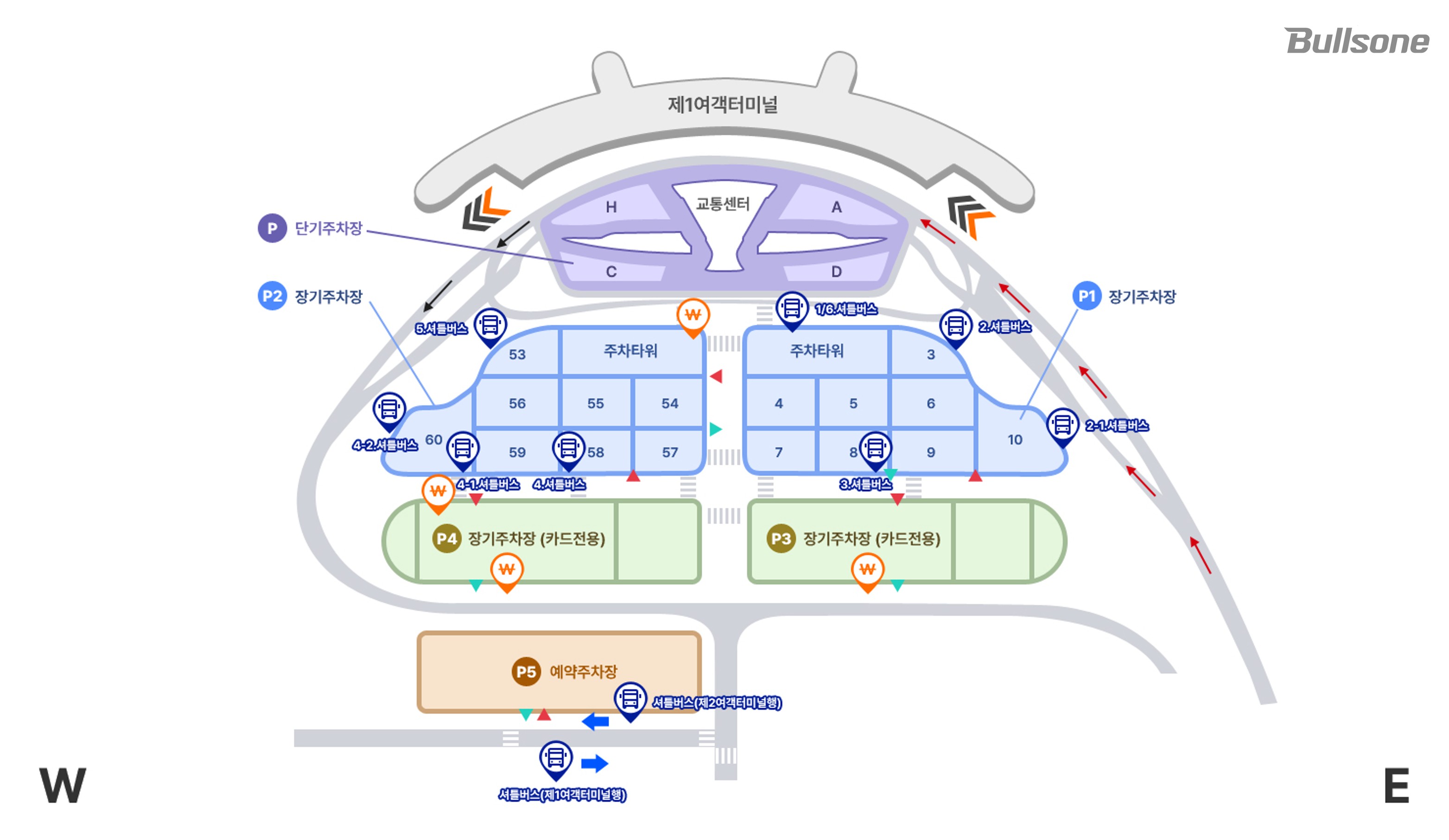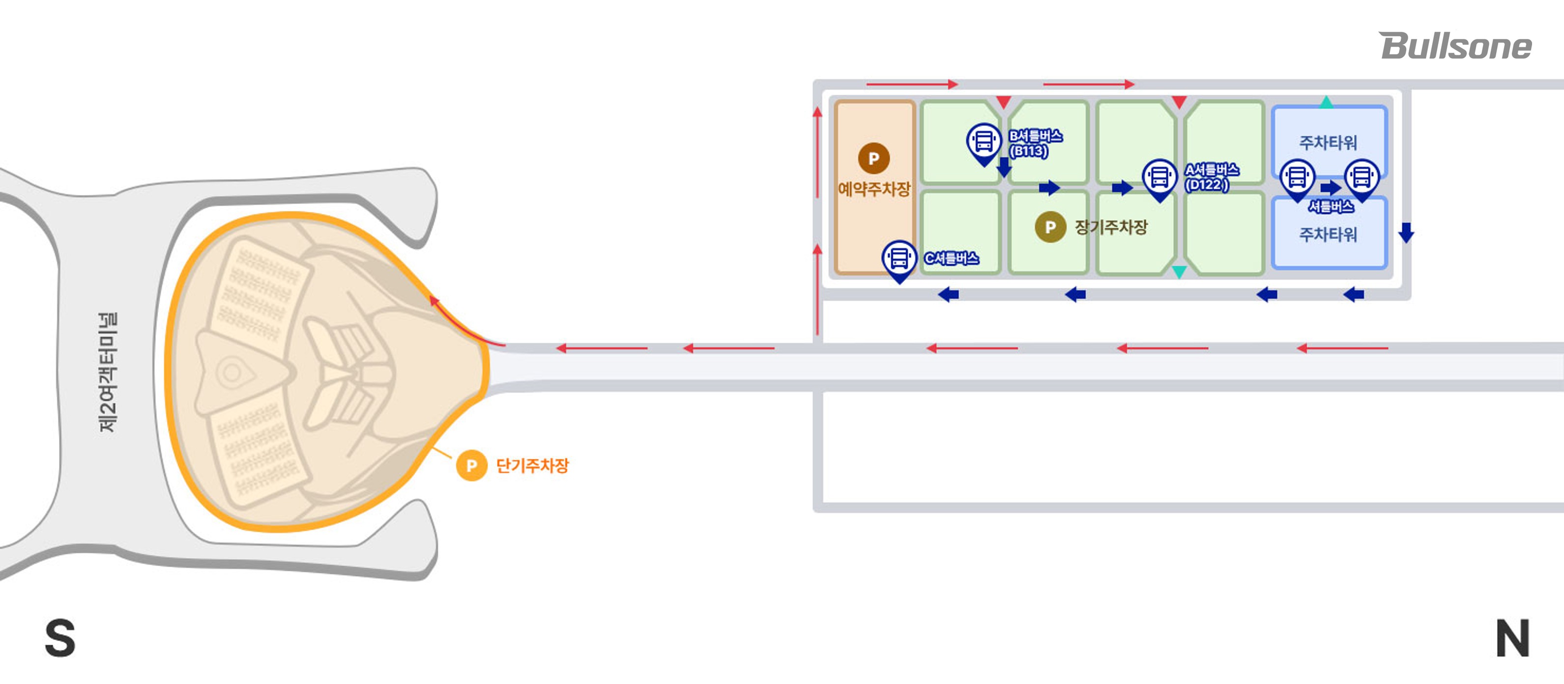 만약 예약 주차 서비스를 이용하셨다면, 터미널에 상관없이 모두 제1여객터미널 P5구역에 주차해야 하며 예약주차장이 별도로 위치해 있기 때문에 꼭 진입로를 확인하셔야 합니다.(제2여객터미널로 출국 시 공항 셔틀버스를 이용해 이동 가능합니다.)