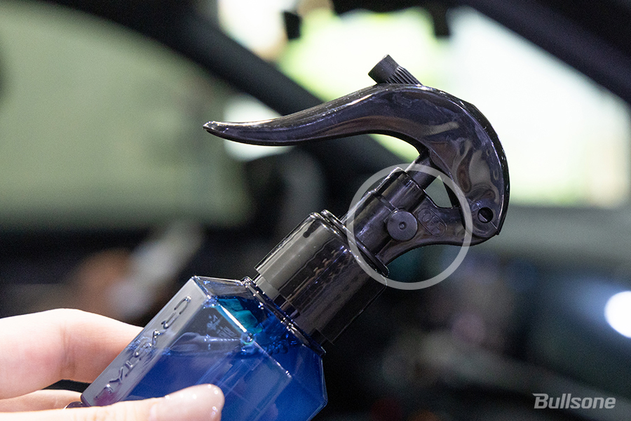도장면 외장 관리가 끝났다면 실내 관리를 해줄 차례겠죠? 나파, 천연, 인조가죽, 플라스틱, 패브릭 등 다양한 재질에 사용 가능한 크리스탈 실내 크리너로 차량 내부를 닦아주겠습니다. 실내 크리너에 미니건을 결합해 사진에 표시된 OFF 부분을 눌러주시면 사용하지 않을 때에는 간단히 잠금 처리가 가능하답니다.