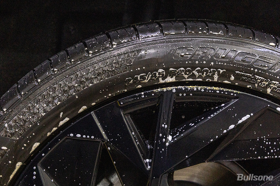 브러쉬나 스펀지로 타이어에 묻은 먼지나 오염을 세밀하게 제거합니다.