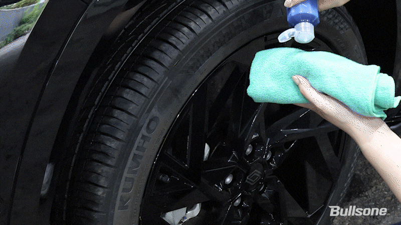 마지막으로 세차 후, 건조해진 타이어를 윤기 있게 만들기 위해 타이어 드레싱을 발라주겠습니다.