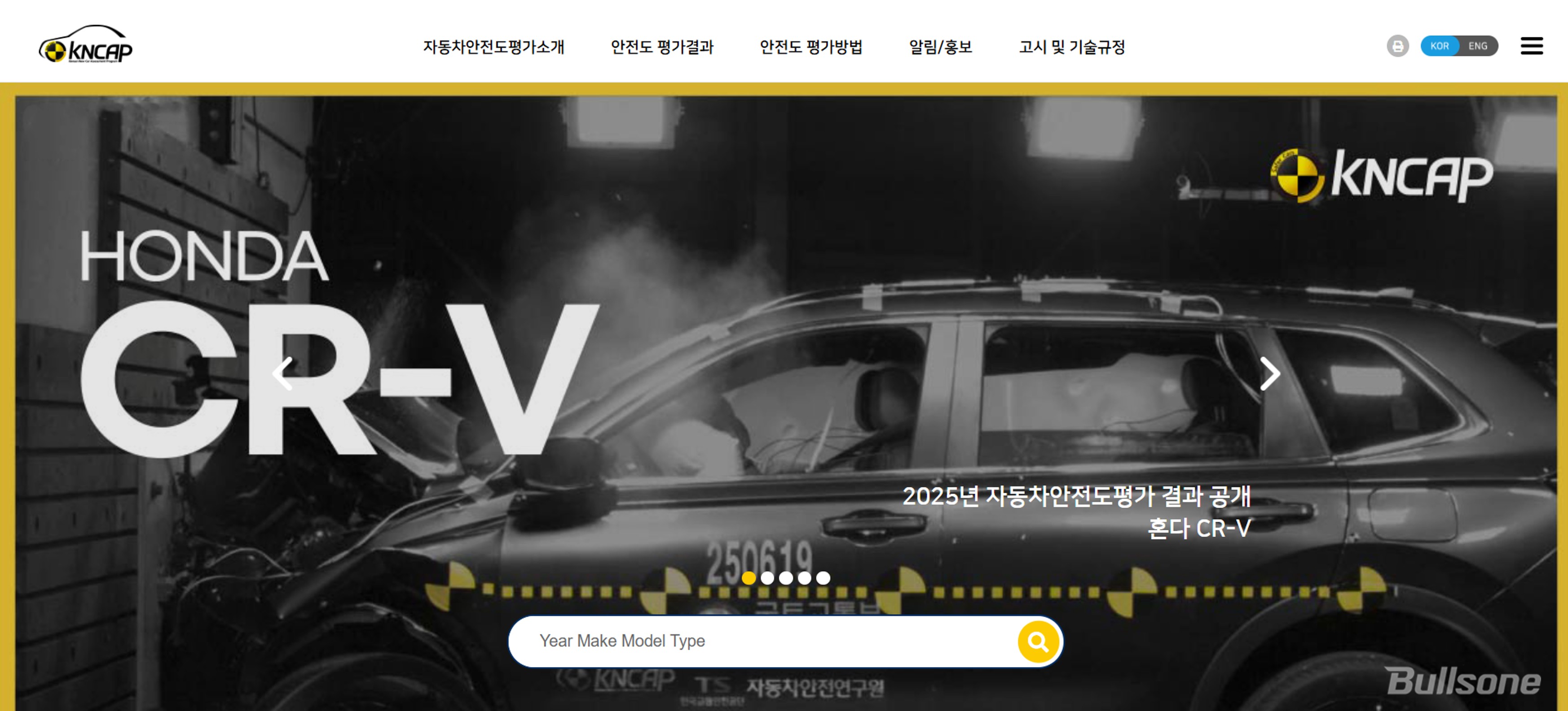자동차안전도평가(New Car Assessment Program, KNCAP)는 국토교통부 산하 자동차안전연구원에서 매년 신차를 대상으로 진행하는 평가로 소비자에게는 자동차 안전에 대한 정보를 제공하고, 제작사로 하여금 안전도가 높은 자동차를 제작하도록 유도하기 위한 목적으로 진행되는 평가 제도입니다. 차량별로 실제 충돌 실험을 하고, 다양한 상황에서 안전 성능을 검증한 뒤 별점과 점수를 공개합니다. 쉽게 말해 사고 났을 때 해당 자동차가 얼마나 안전한가를 숫자로 보여주는 제도입니다.