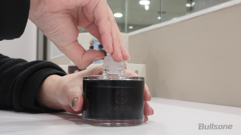 4. 우드 스틱을 속캡 중앙에 꽂아주세요. 우드스틱이 유리용기 바닥면에 닿아야 가장 좋은 발향 효과가 나타납니다.