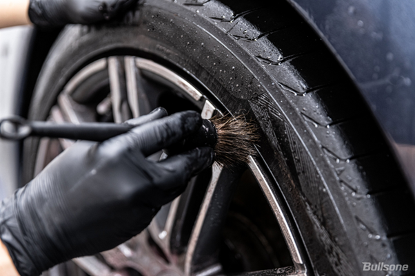 뉴 크리스탈 휠&타이어 크리너는 사용법도 간단합니다. 우선 갈변된 타이어와 휠에 뉴 크리스탈 휠&타이어 크리너를 고르게 분사해줍니다. 제품이 타이어를 세정할 동안 잠시 기다리는 것도 좋고, 휠에 찌든 때가 많다면, 브러쉬를 이용해 틈새를 닦아주는 것도 좋습니다.