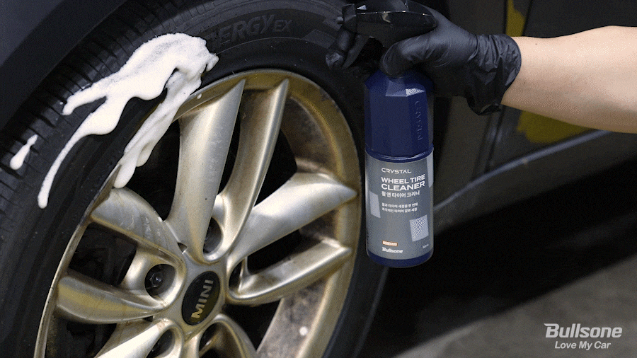 이렇게 색이 변하는 타이어는 어떻게 관리하는 것이 좋을까요? 바로 타이어 크리너를 사용하는 것입니다! 불스원의 세차용품 전문 브랜드 크리스탈의 ‘뉴 크리스탈 휠&타이어 크리너’ 하나만 있으면, 휠과 타이어를 한 번에 청소할 수 있고, 깨끗한 상태로 쉽게 되돌릴 수 있습니다!