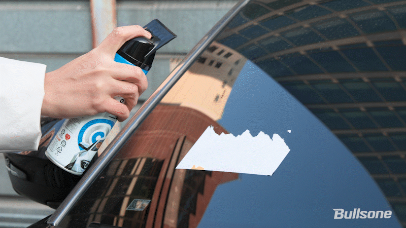 2️⃣ 스티커 잔여물이 남은 유리창에 제품을 분사합니다.