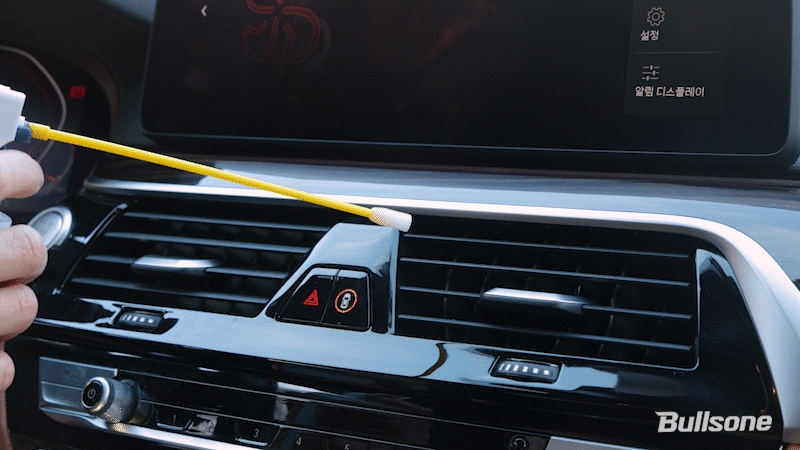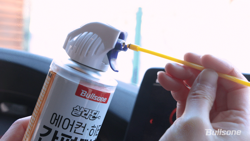 4. 스트로우를 히터 통풍구 안쪽으로 최대한 깊숙이 넣어 통풍구당 1~2초 분사해주세요. (분사액이 통풍구에 묻지 않도록 스트로우를 최대한 깊숙이 주입해주세요)