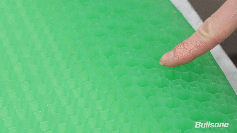 밸런스온 차량용 방석이 특별한 이유는 단순히 '말랑말랑함'이 아닌 특별한 구조에 있습니다. 바로 특허 받은 2중 6각 허니콤 구조 베타젤인데요. 상단부의 얇은 젤과 하단부의 얇은 젤, 2중 6각 구조의 베타젤이 역할을 나눠서 운전자의 하중을 고르게 나눠서 받춰준답니다.