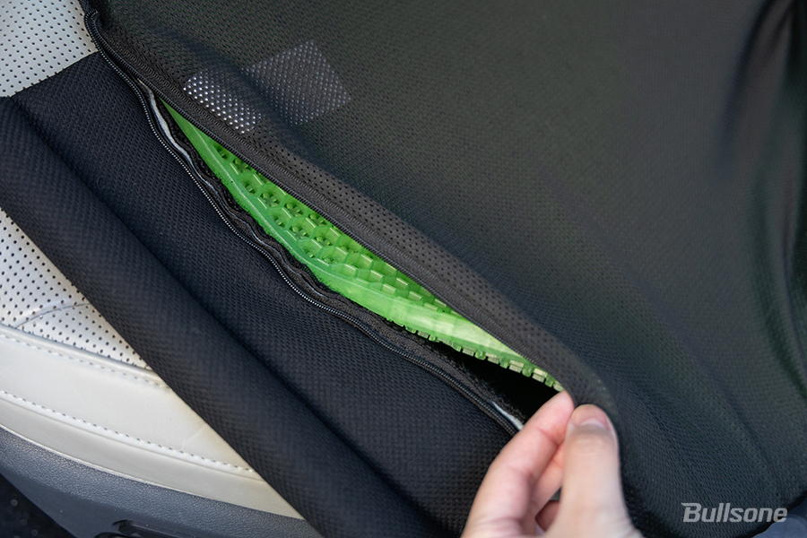 또, 차량용 방석을 사용하다보면 통풍이나 열선 기능이 약해진 듯한 느낌을 받으실 때가 종종 있죠? 방석의 푹신함에만 치중하다보니 두께만 늘려 공기 흐름을 고려하지 않은 탓인데요. 밸런스온 차량용 방석의 경우, 베타젤 시트의 158개 에어홀로 공기 흐름을 만들고 메쉬 원단 커버로 쾌적함을 높여 땀 참이나 꿉꿉함을 줄이는 방향으로 설계했습니다.