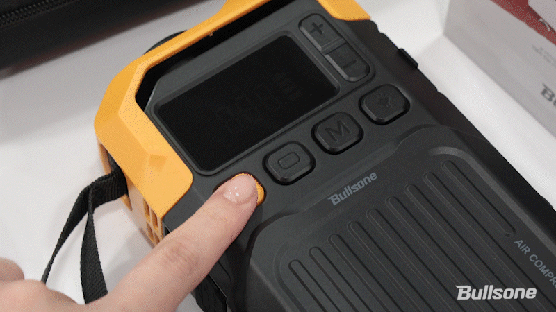 5. START 버튼을 눌러 공기 주입을 시작합니다. 설정 공기압에 도달하면 오토스탑 기능으로 자동 정지합니다.