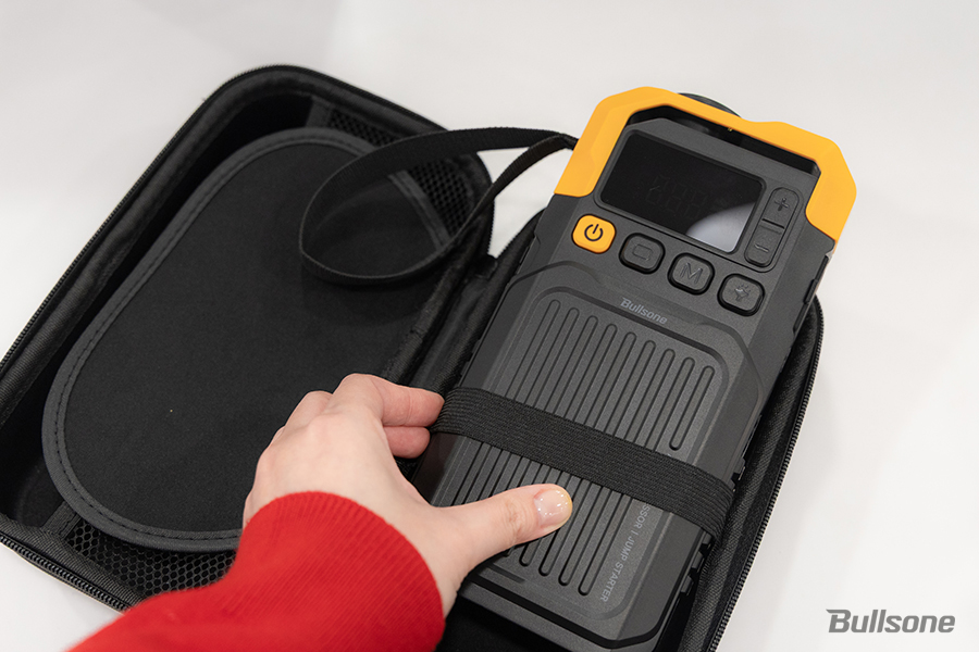 공기주입기와 점프스타터가 하나로 합쳐졌지만 크기만큼은 컴팩트하게! 전용 케이스에 넣어 자동차 글로브 박스나 뒷좌석, 트렁크 등 어디든 손쉽게 수납이 가능한 사이즈로 보관이 편리합니다.